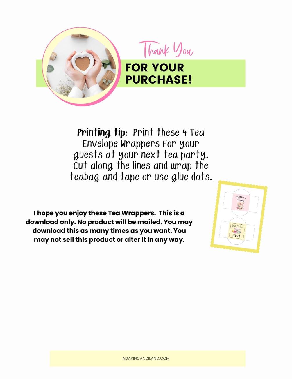 These teabag envelope wrappers will be a great addition to your tea party. They can be printed for your guests or friends with paper and cut and folded around the teabag.